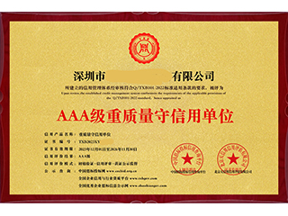AAA級重服務守信用企業認證是對企業在服務方面的高度認可,表示該企業在服務質量、客戶滿意度、售后服務等方面表現出色,并且在經營過程中遵守誠信原則,具備良好的商業信譽。